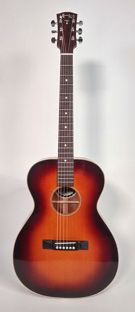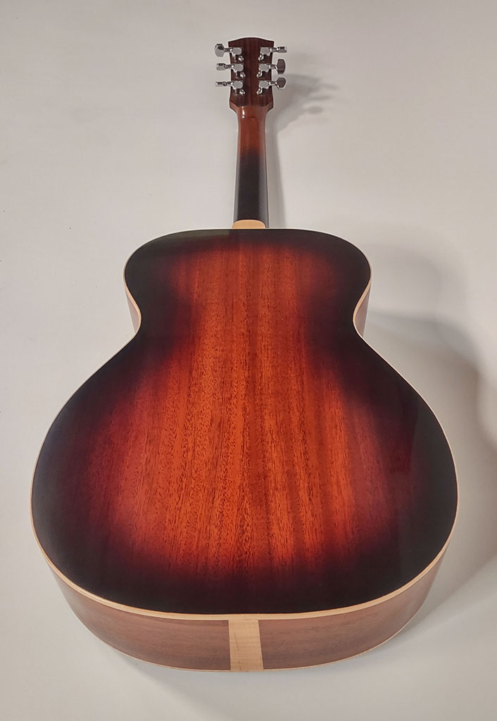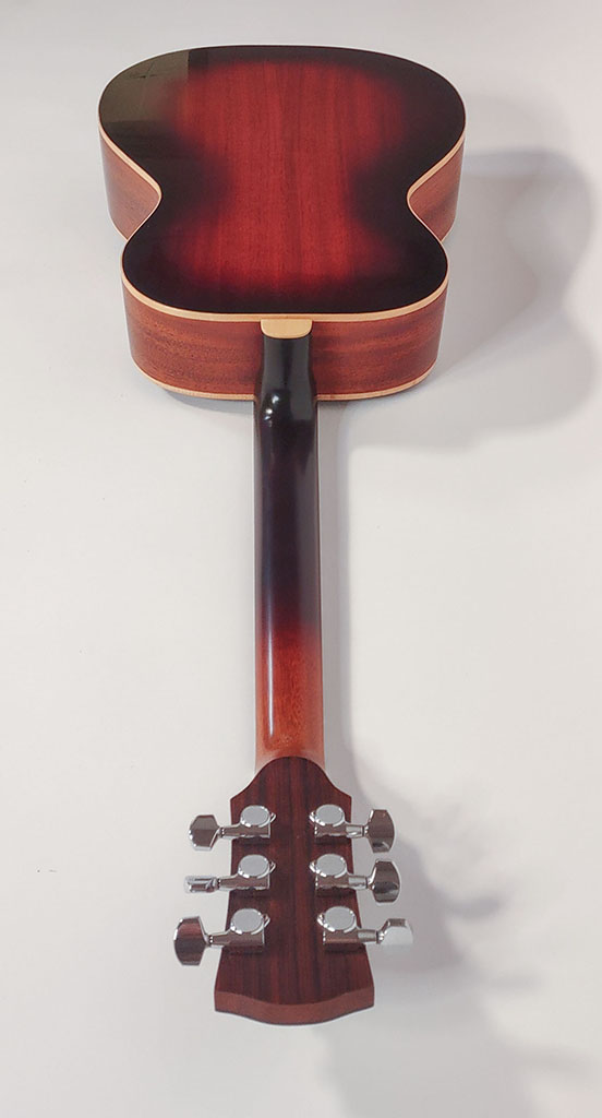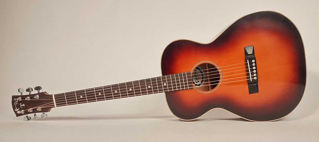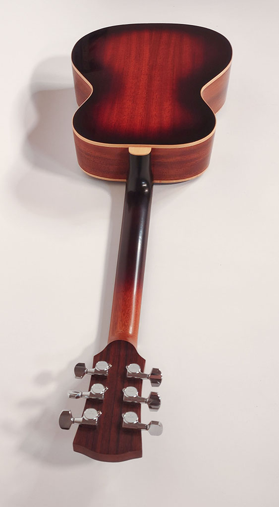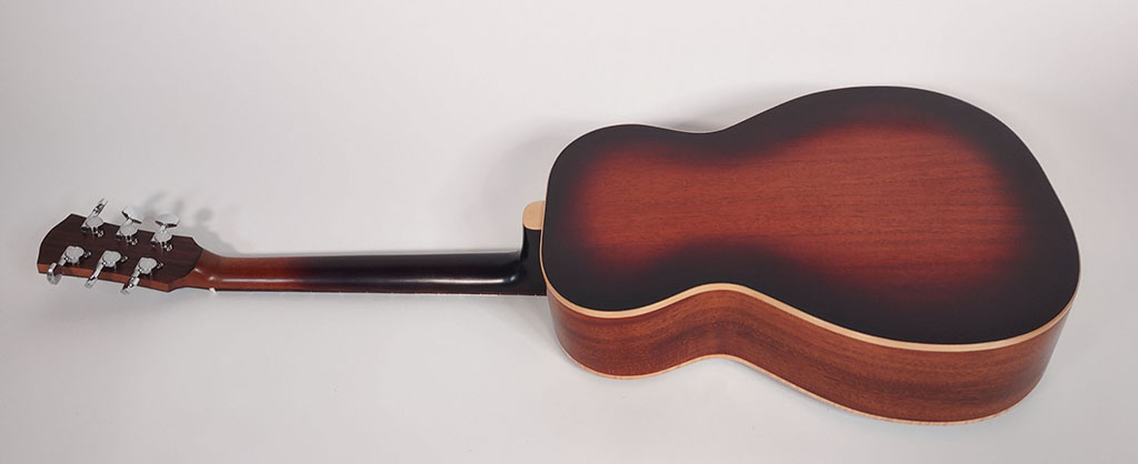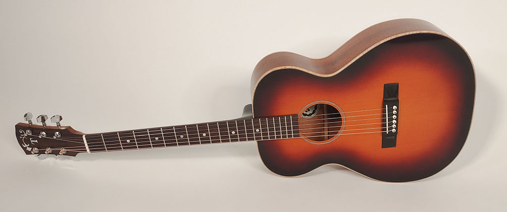 Cedar top, mahogany back and sides, maple bindings.